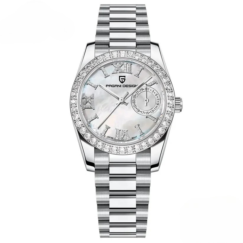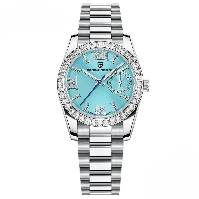 The PAGANI DESIGN 2024 Women’s Wristwatch blends luxury and everyday functionality in a sleek, modern design. Built with a 32mm stainless steel case and matching band, it offers durability while maintaining refined elegance. The sapphire crystal dial window ensures superior scratch resistance, while the Japanese TMI VH65 quartz movement delivers exceptional accuracy.