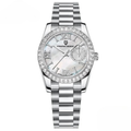 With 10 ATM water resistance (100 meters), this timepiece is suitable for swimming, showering, and daily wear. A date display adds convenience, and the secure folding clasp provides comfort and reliability throughout the day. Designed for versatility, it transitions effortlessly between fashion, casual, and professional settings.